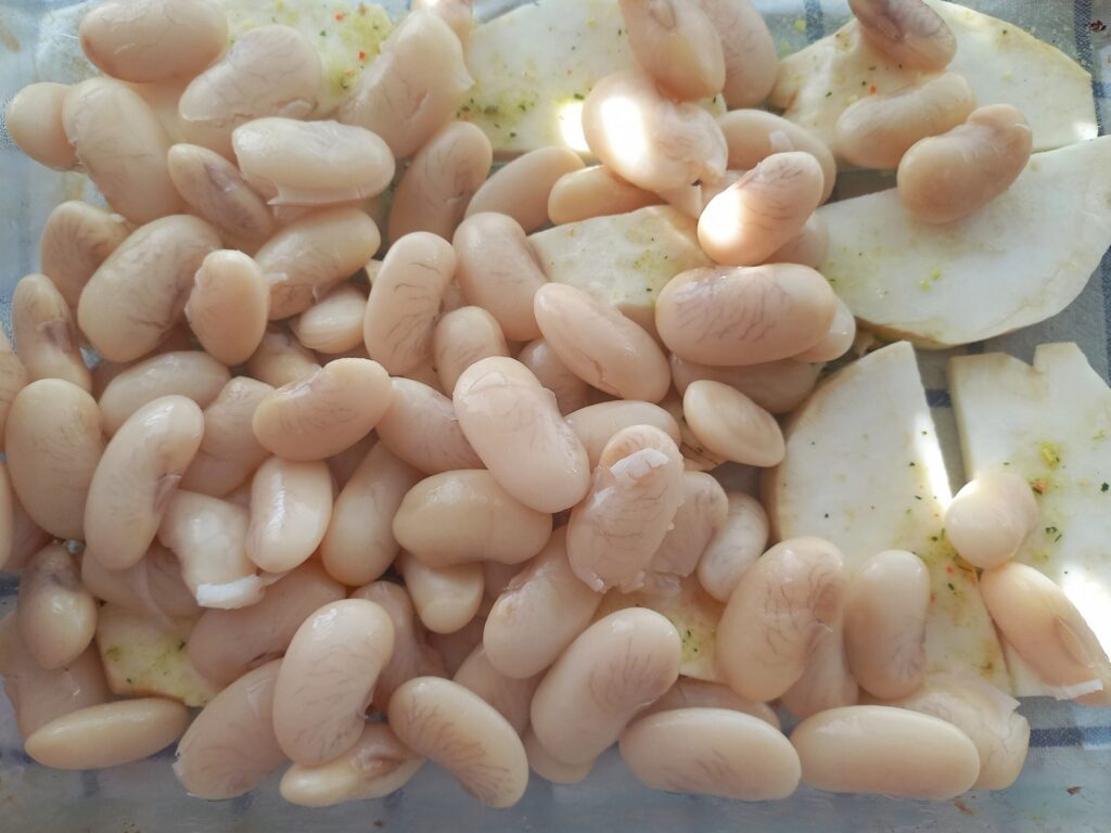 - Βράζω τους γίγαντες, αφού τους έχω μουλιάσει από το προηγούμενο βράδυ, ώσπου να μαλακώσουν. Περίπου 50-60.