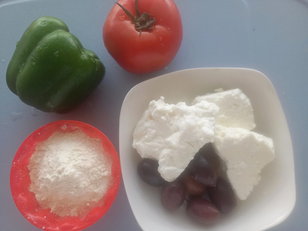 • Όλα τα υλικά για την greek salad, εκτός του αλευριού, τα υπολόγισα γύρω στα 200 γρ.