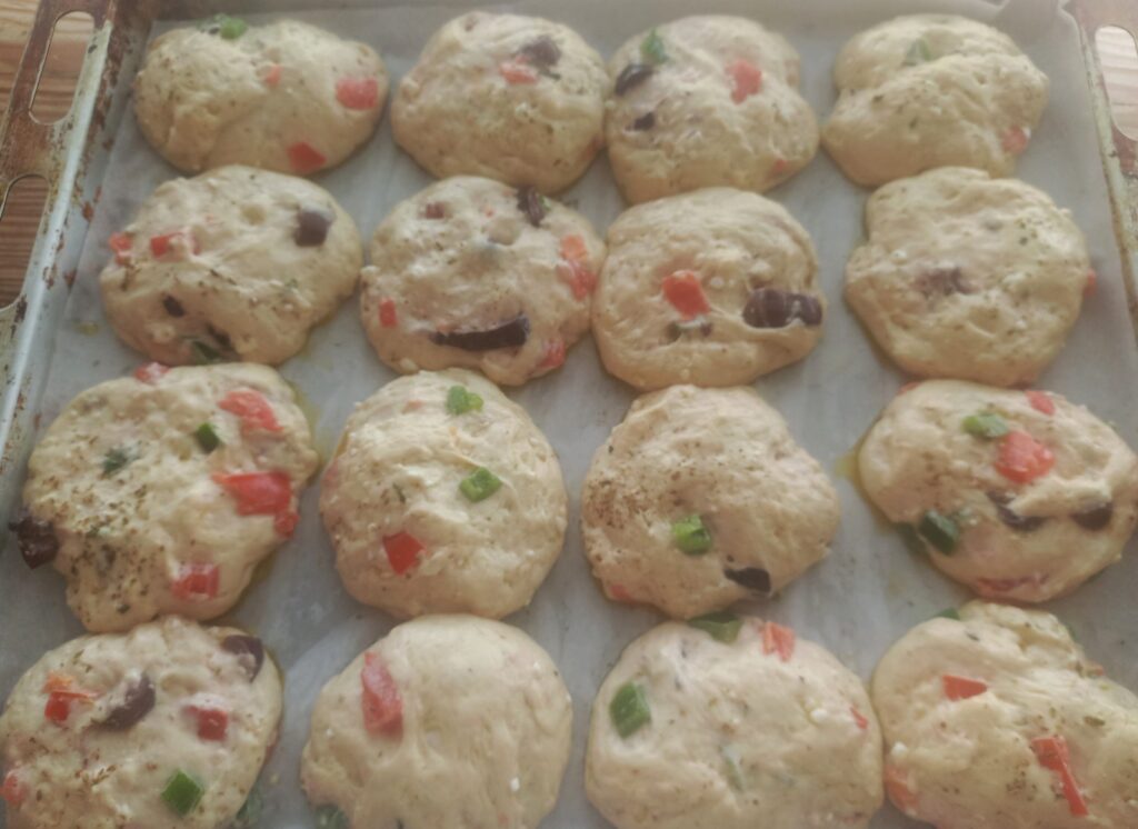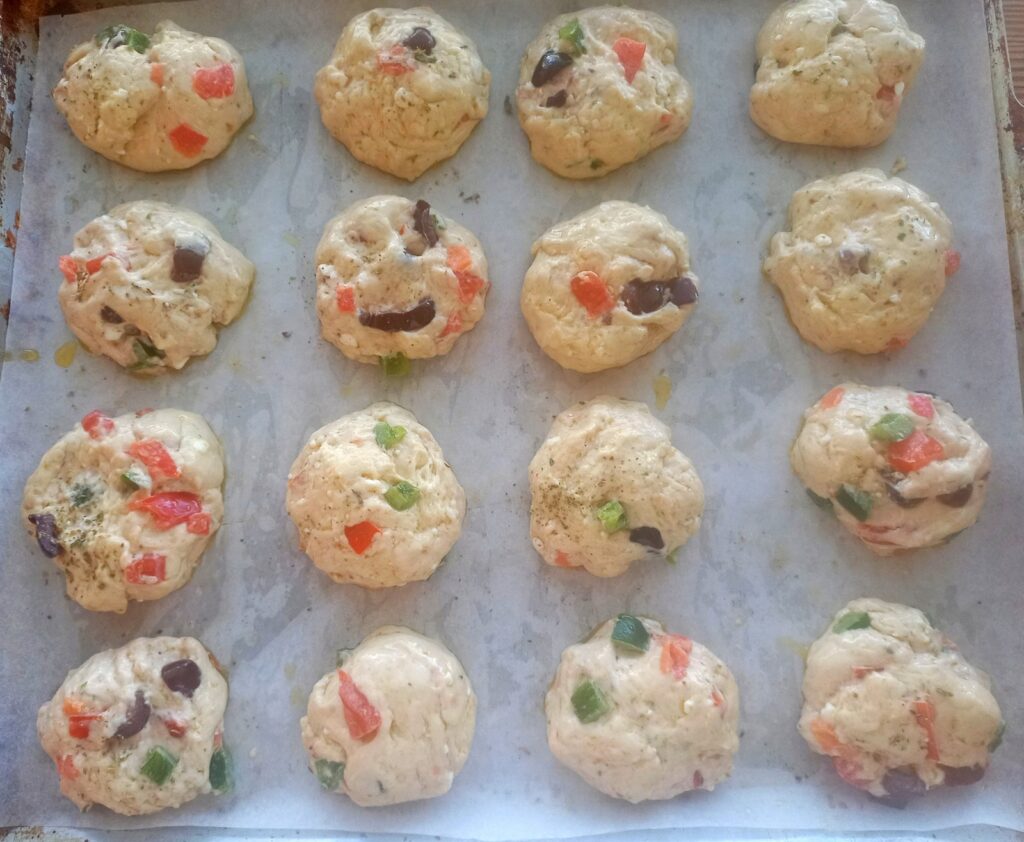 • Μετά και από το δεύτερο φούσκωμα της ζύμης, αρχίζω και πλάθω μικρά μπαλάκια και τα τοποθετώ σε ταψί, πάντα πάνω σε χαρτί αντικολλητικό.