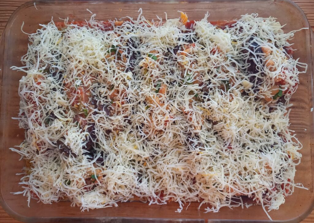 • Μπόλικο τυρί πάνω απ’ τις μελιτζάνες.