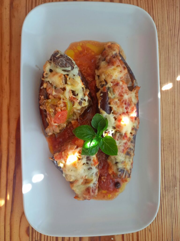 Μελιτζάνες ιμαμ γεμιστές και με κοτόπουλο