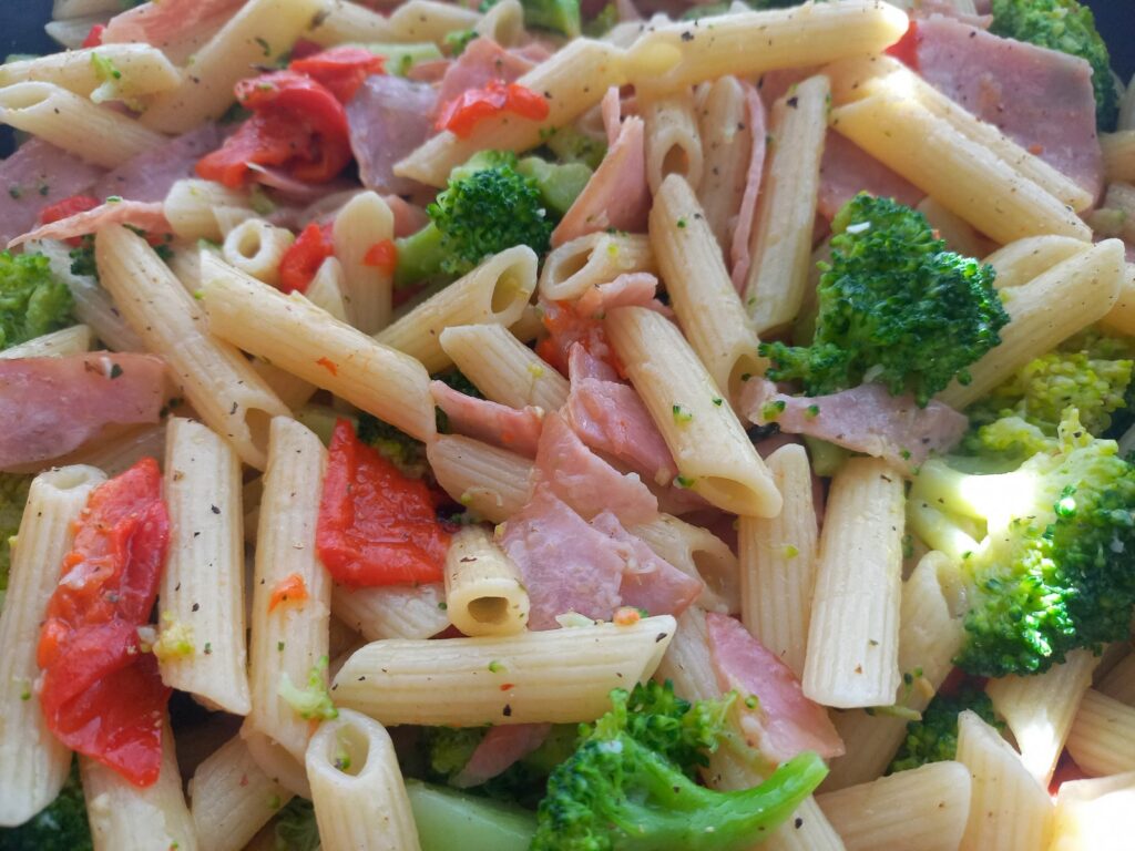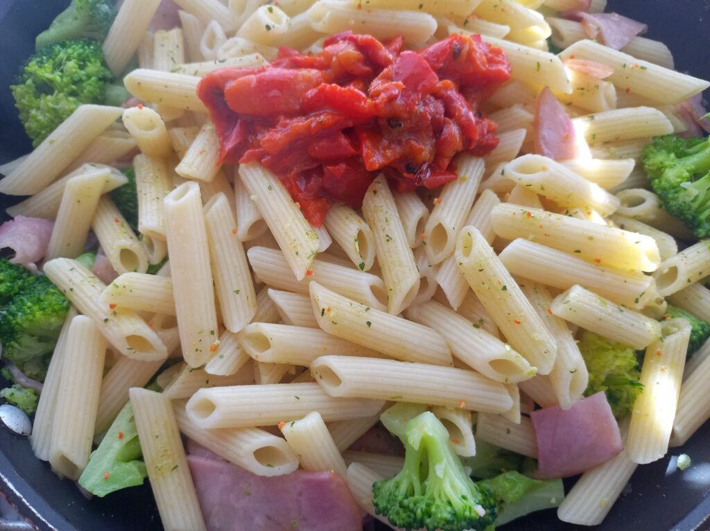 Πέννες με μπρόκολο, μπέικον, πιπεριές